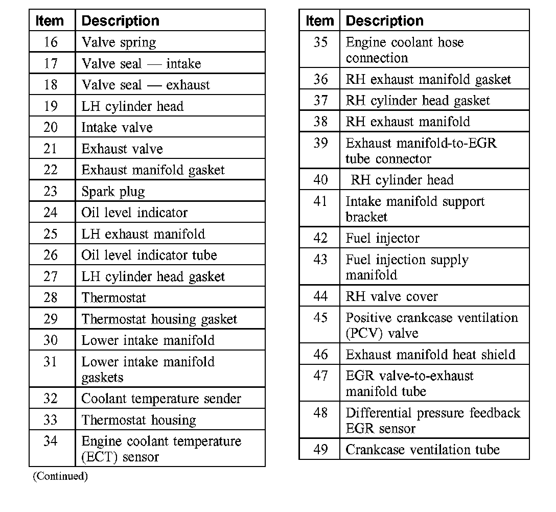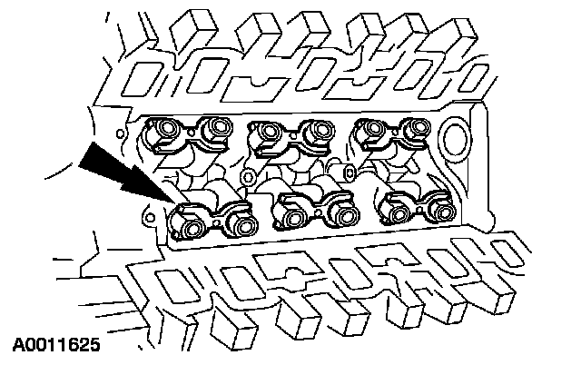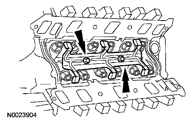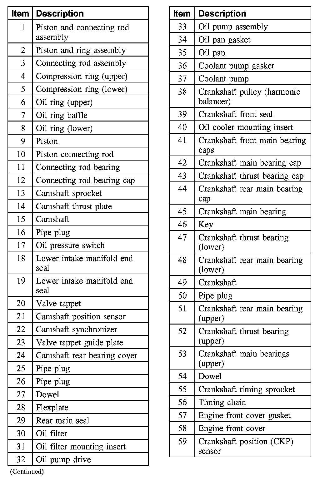CAUTION: During engine repair procedures, cleanliness is extremely important. Any foreign material, including any material created while cleaning gasket surfaces that enters the oil passages, coolant passages or the oil pan, can cause engine failure.