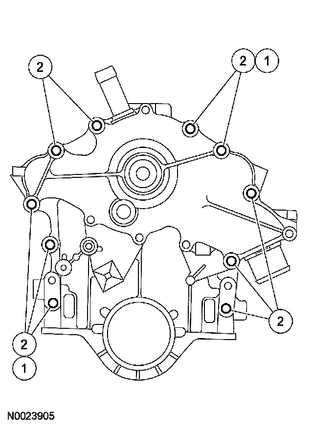 2. Install the 5 bolts and 5 stud bolts and tighten to 25 Nm (18 ft. lbs.).
