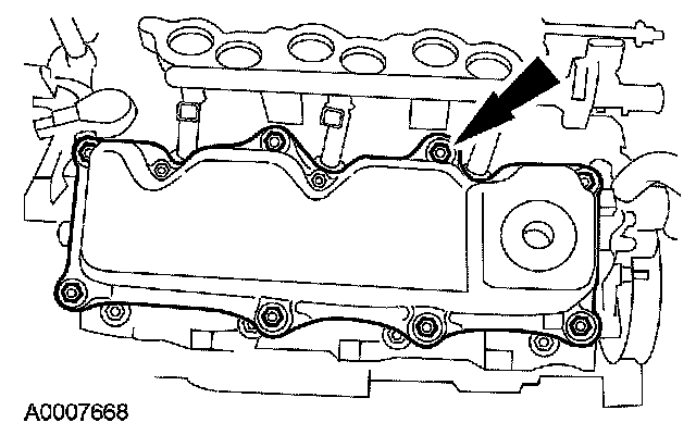 38. Install the lower intake manifold and the 8 bolts. Tighten the bolts in two stages in the sequence shown.