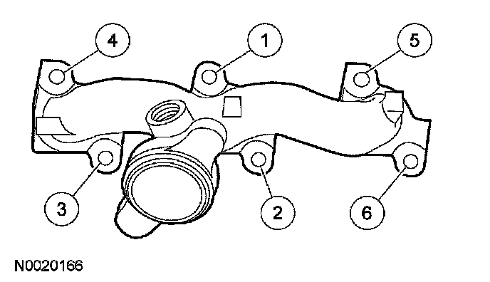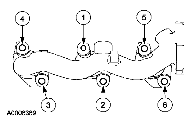 47. Position a new exhaust manifold gasket and install the LH exhaust manifold, 4 bolts and 2 stud bolts.
