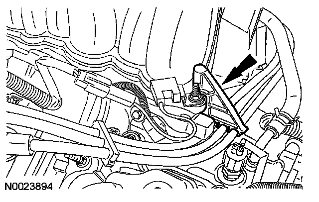 57. Attach the spark plug wire retainer to the intake manifold stud bolt.