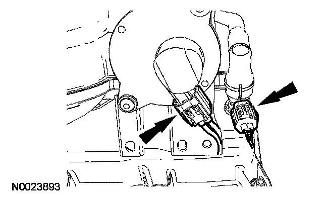 54. Connect the camshaft position (CMP) sensor and engine coolant temperature (ECT) sensor electrical connectors.