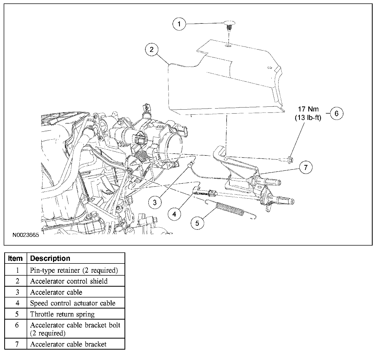 3. Remove the 2 pin-type retainers and the accelerator control shield.