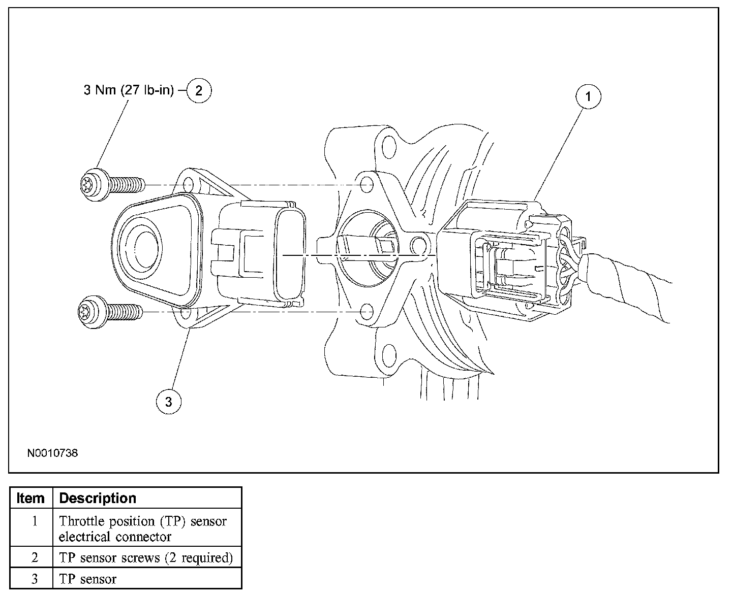 1. NOTE: When installing the new TP sensor, make sure that the radial locator tab on the TP sensor is aligned with the radial locator hole on the throttle body.