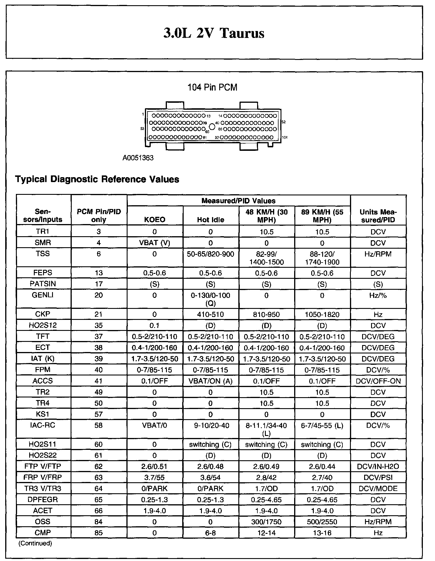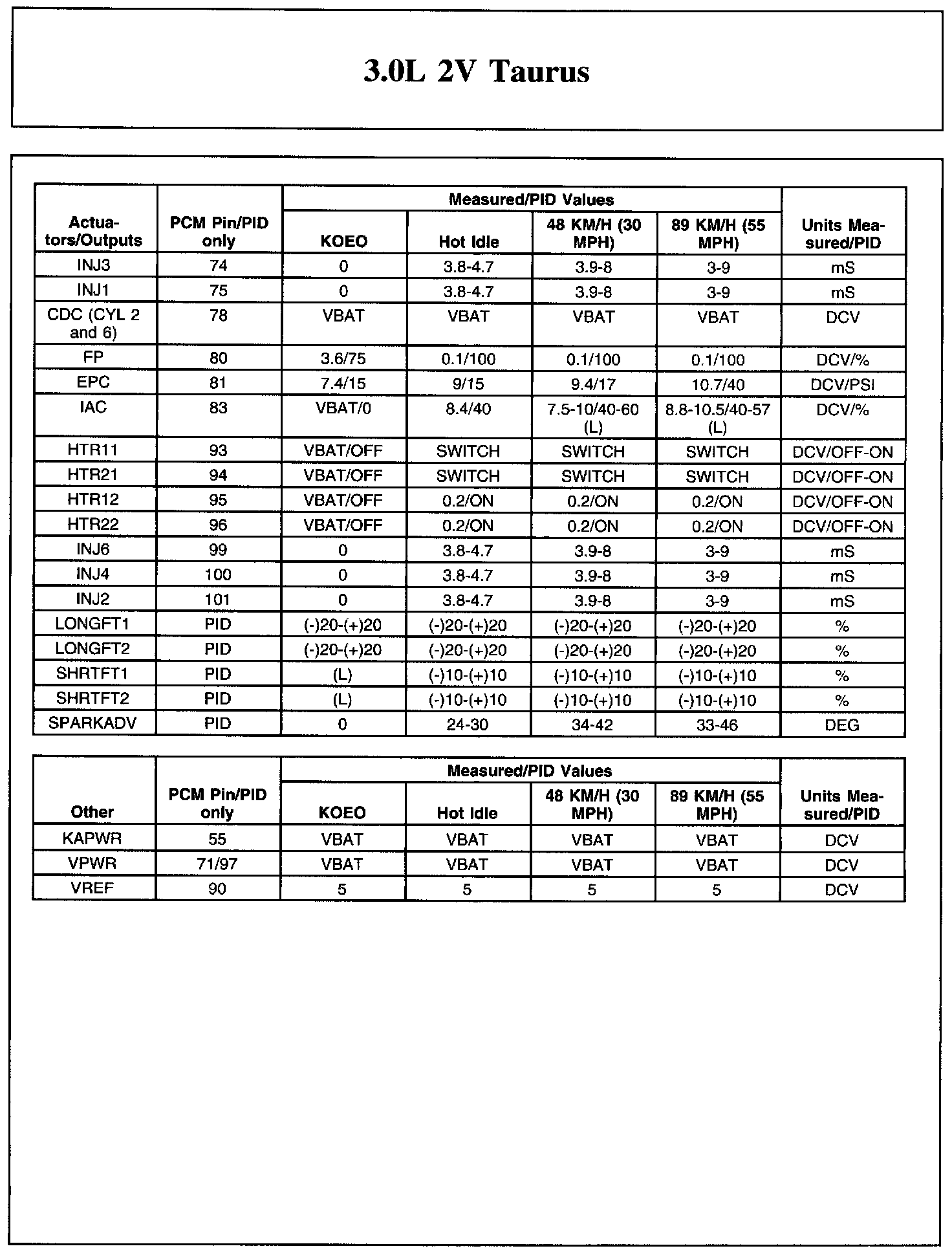 The Typical Diagnostic Reference Value Charts do not display fault parameter identifications (PIDs). These are PIDs which indicate a hard fault with the circuit. They display a value of YES or NO and are PIDs ending with the letter F.