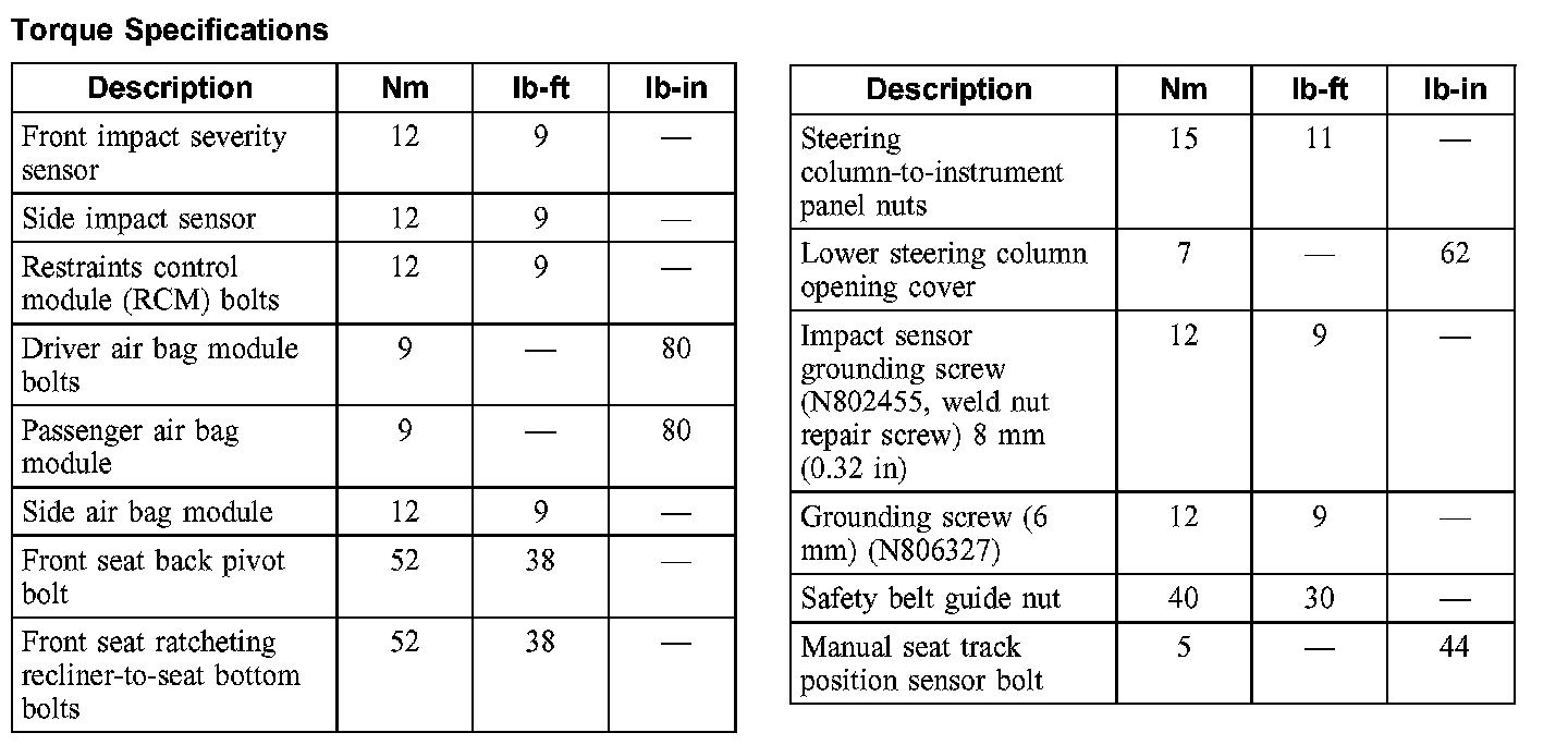 Torque Specifications: