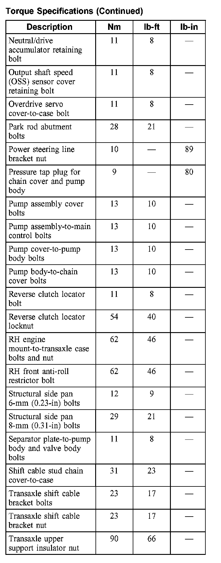 Torque Specifications: