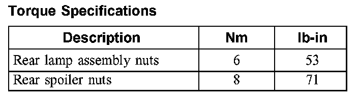 Torque Specifications: