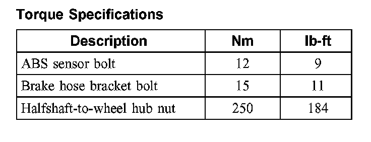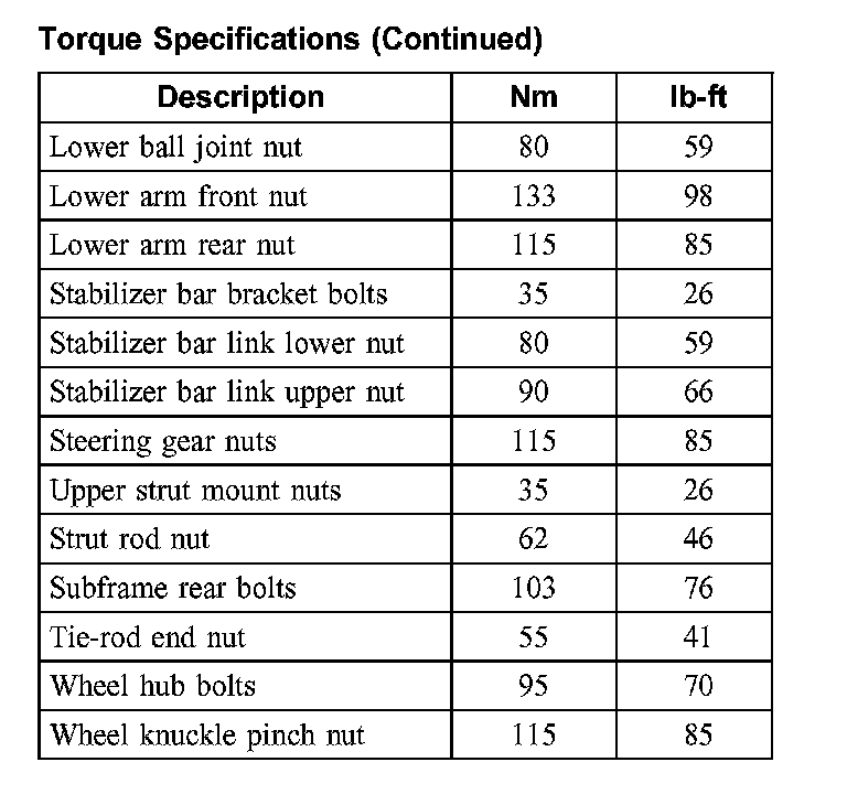 Torque Specifications: