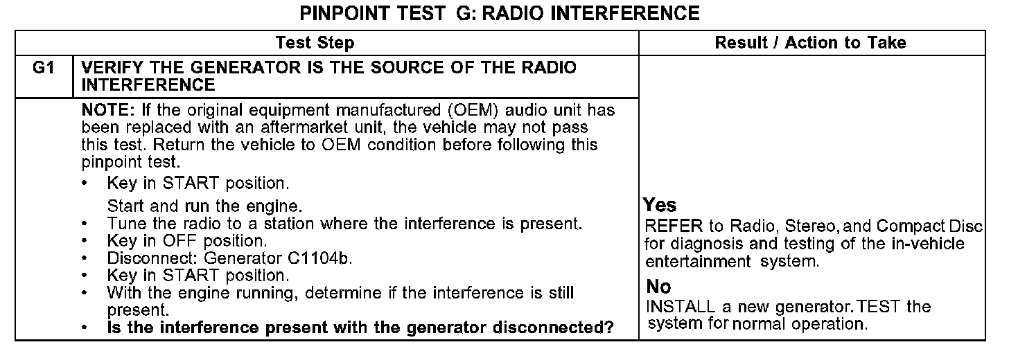 PINPOINT TEST G: RADIO INTERFERENCEG1: