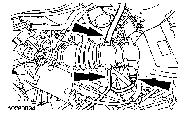 33. Reconnect the mass air flow (MAF) sensor and the breather tubes.