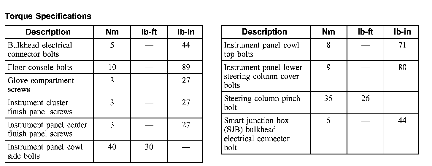 Torque Specifications: