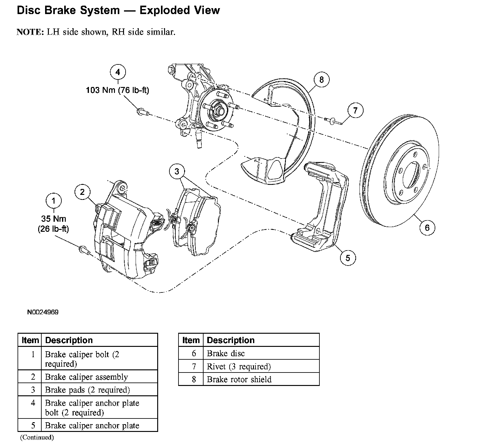 Disc Brake System - Exploded View: