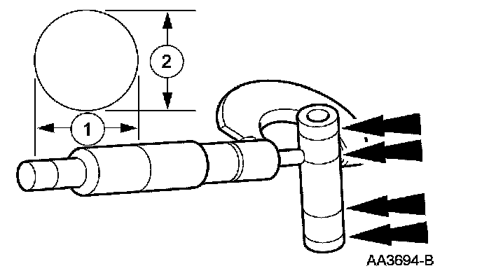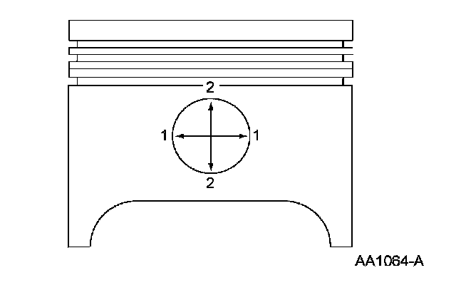 1. Measure the piston pin diameter in 2 directions at the points shown. Verify the diameter is within specification.