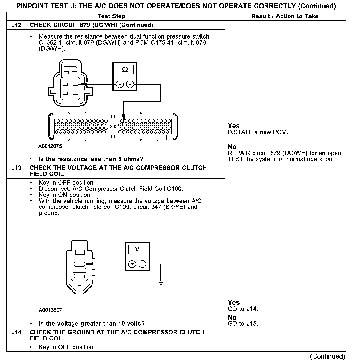 Test J: The A/C Does Not Operate/Does Not Operate Correctly