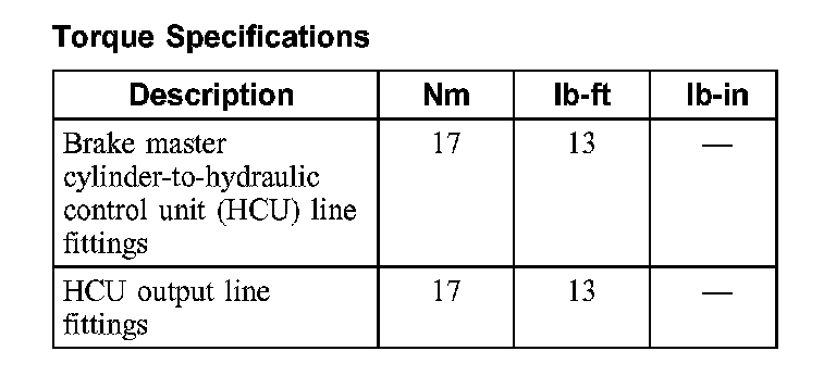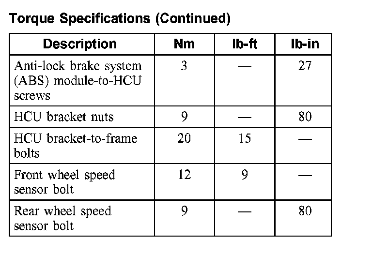 Torque Specifications:
