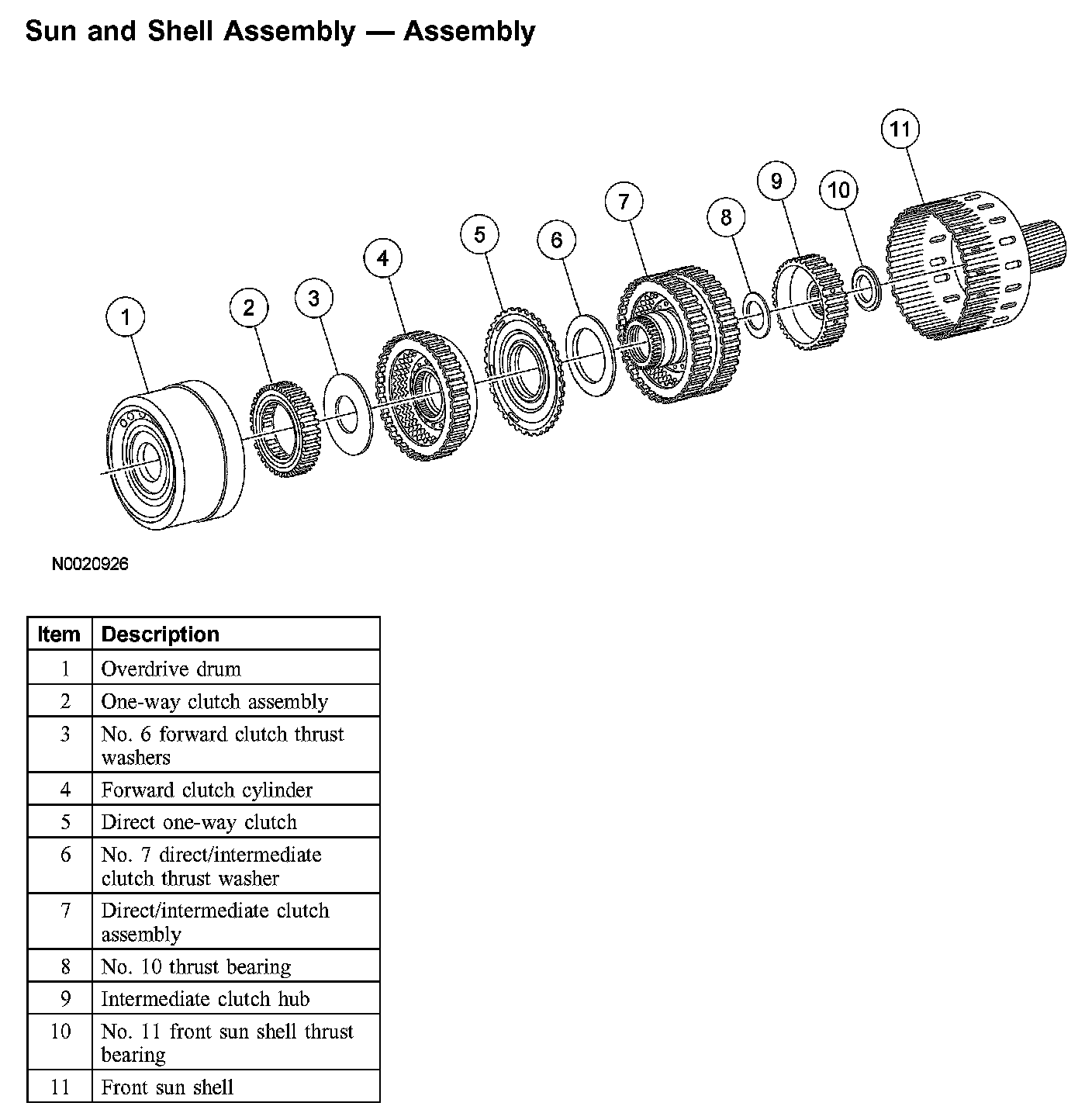 7. Install the rear clutch hub and the No. 10 thrust bearing.