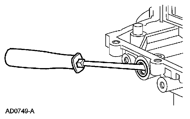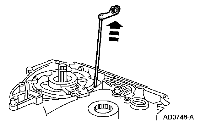 NOTE: The position of the manual valve detent lever is different than past models. The roll pin and shoulder point toward the driven sprocket support. Note the position of the lever during disassembly for correct assembly.