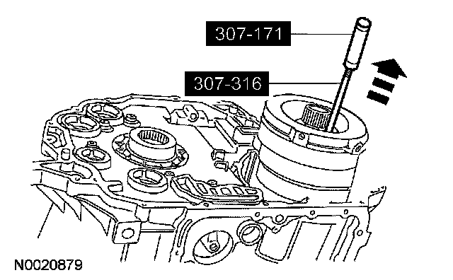 54. Using the special tools, remove the reverse clutch and planet assembly.