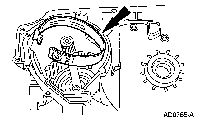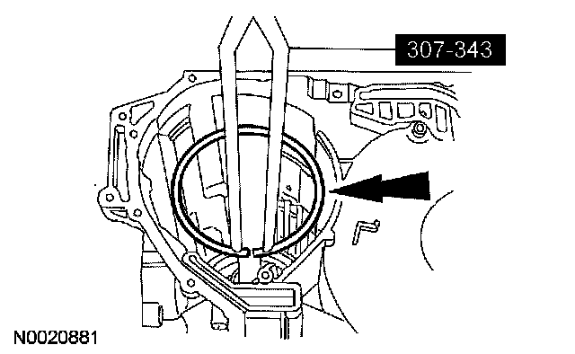 Using the special tool, remove the beveled retaining ring and record the shape of the ring end.