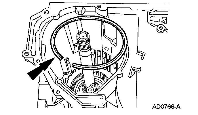CAUTION: Use care not to damage final drive support assembly, transaxle case or retaining ring during removal.