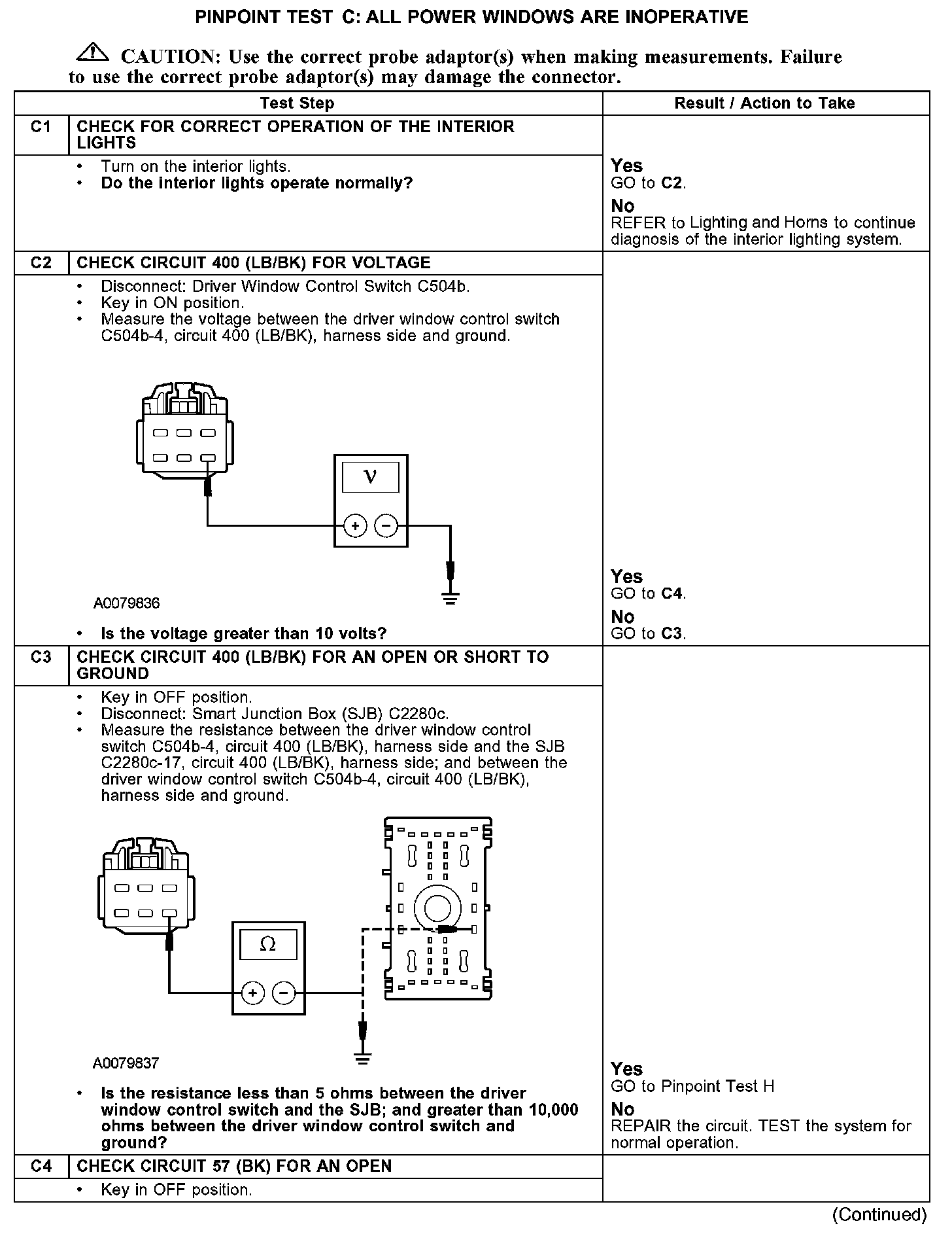 PINPOINT TEST C: ALL POWER WINDOWS ARE INOPERATIVEC1-C4: