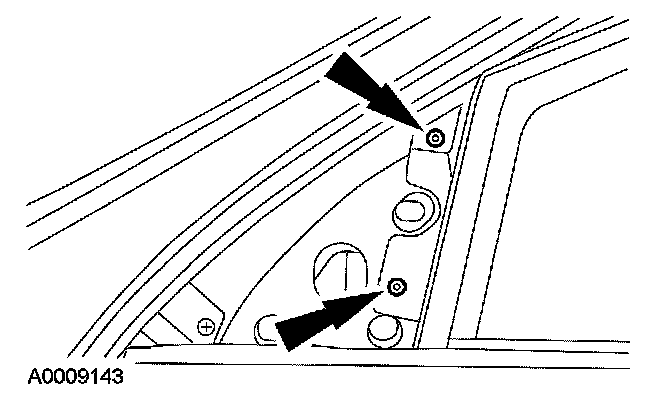 4. Remove the 2 front door glass top run bolts.