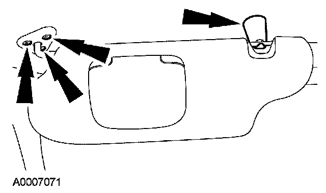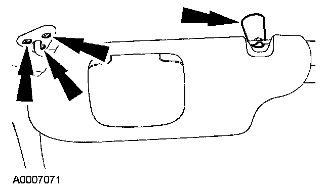 5. Remove the 8 screws, the LH and RH sun visors and the sun visor clips.
