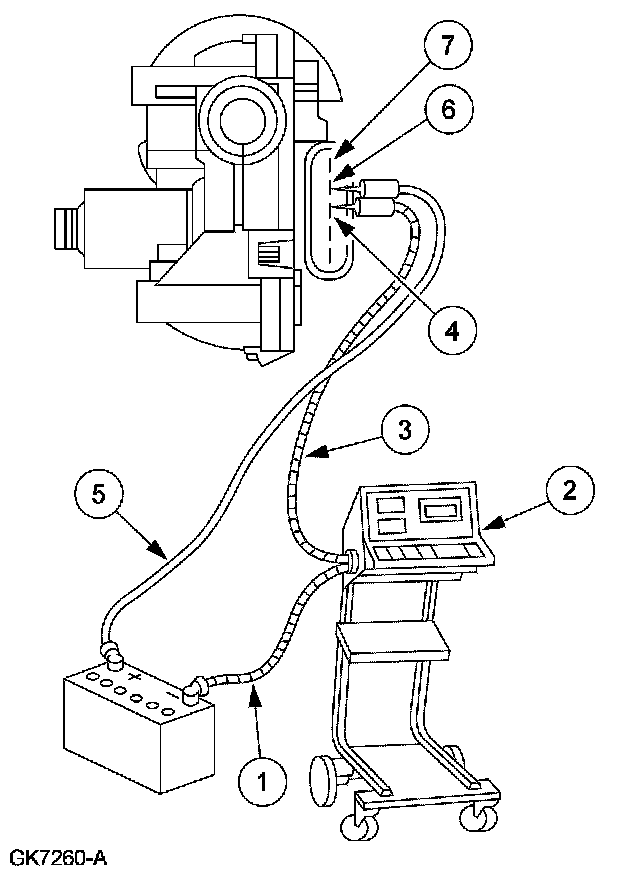Test the low speed mode by connecting a (5) cable from the battery positive (+) post to the (6) low speed brush terminal (Terminal 2) and measure the current draw. If the current draw is greater than 3.5 amperes, install a new windshield wiper motor.
