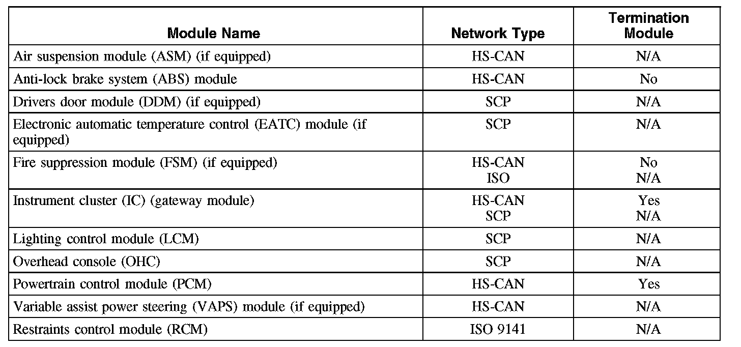 The instrument cluster is the gateway module, translating HS-CAN to SCP and vice versa. This information allows a message to be distributed throughout both networks. The instrument cluster is the only module on this vehicle that has this ability.