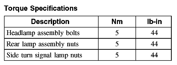 Torque Specifications: