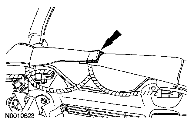 8. CAUTION: Inspect the seat backrest trim panel retaining hooks for damage. If damaged, install a new seat backrest trim panel.