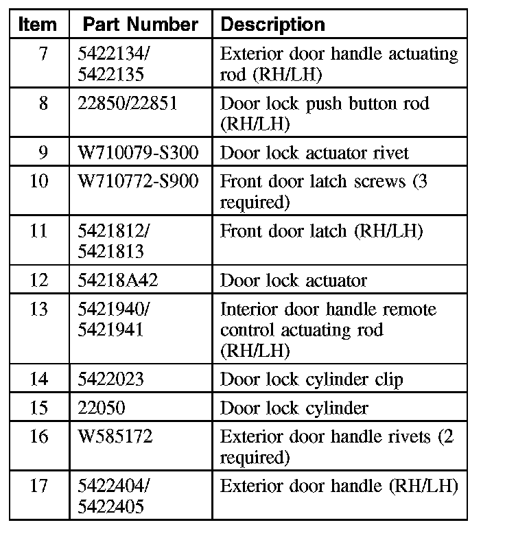 Front Door Handles, Locks and Latches - Exploded View