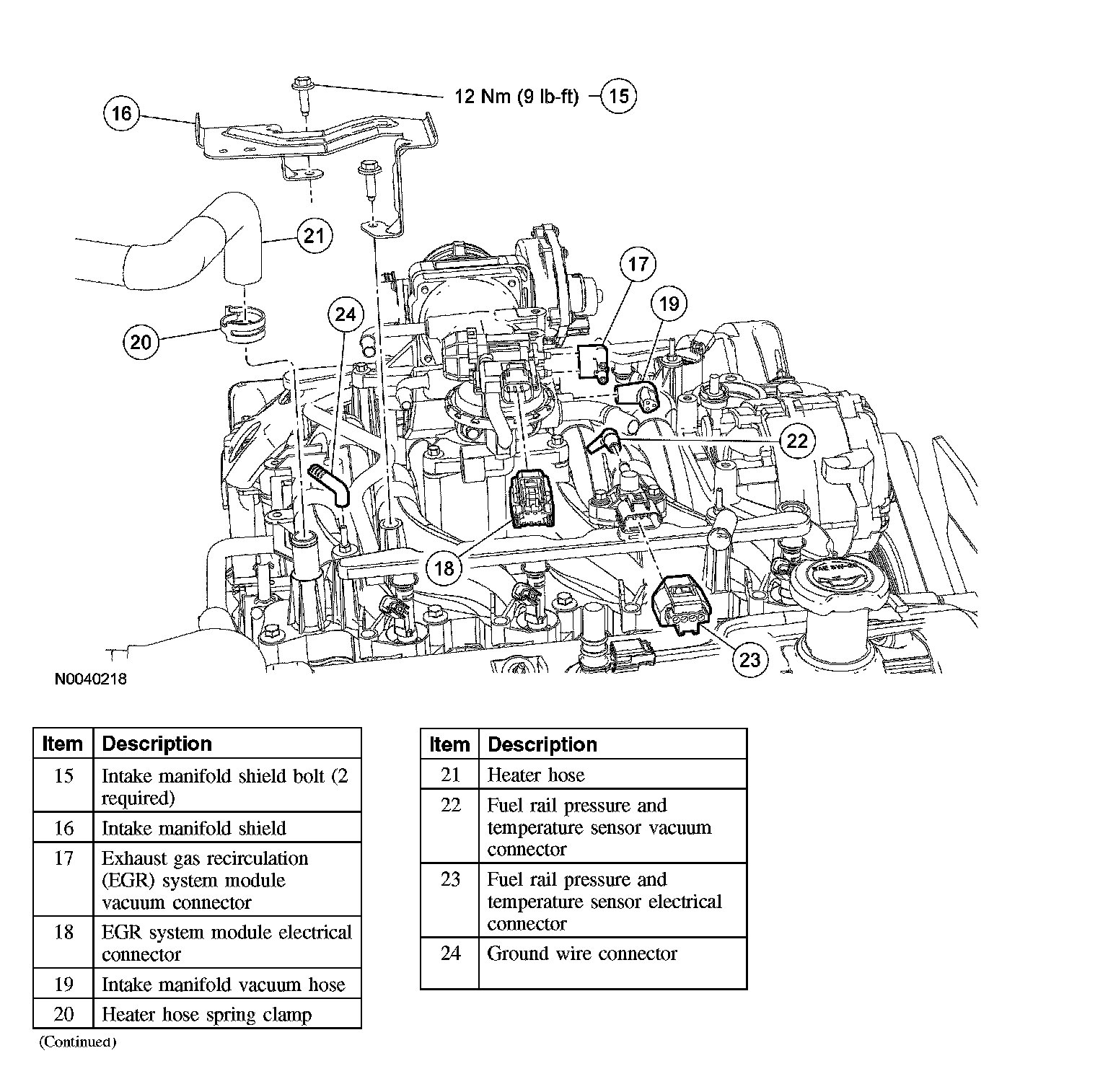 8. Install the intake manifold shield and the 2 bolts.
