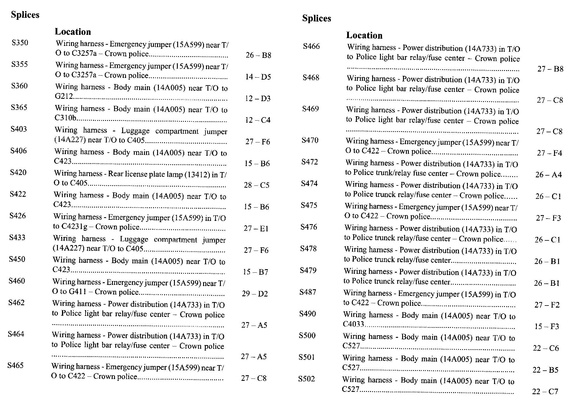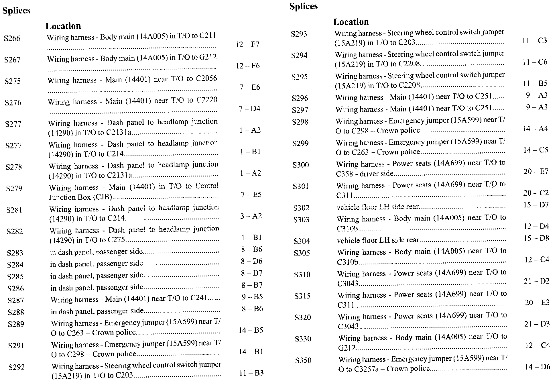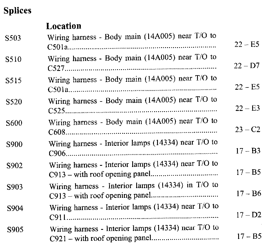 If a link on the Splices Location Index to a View is not provided, that means that the Splices and/or View in question does NOT apply to the vehicle model selected.