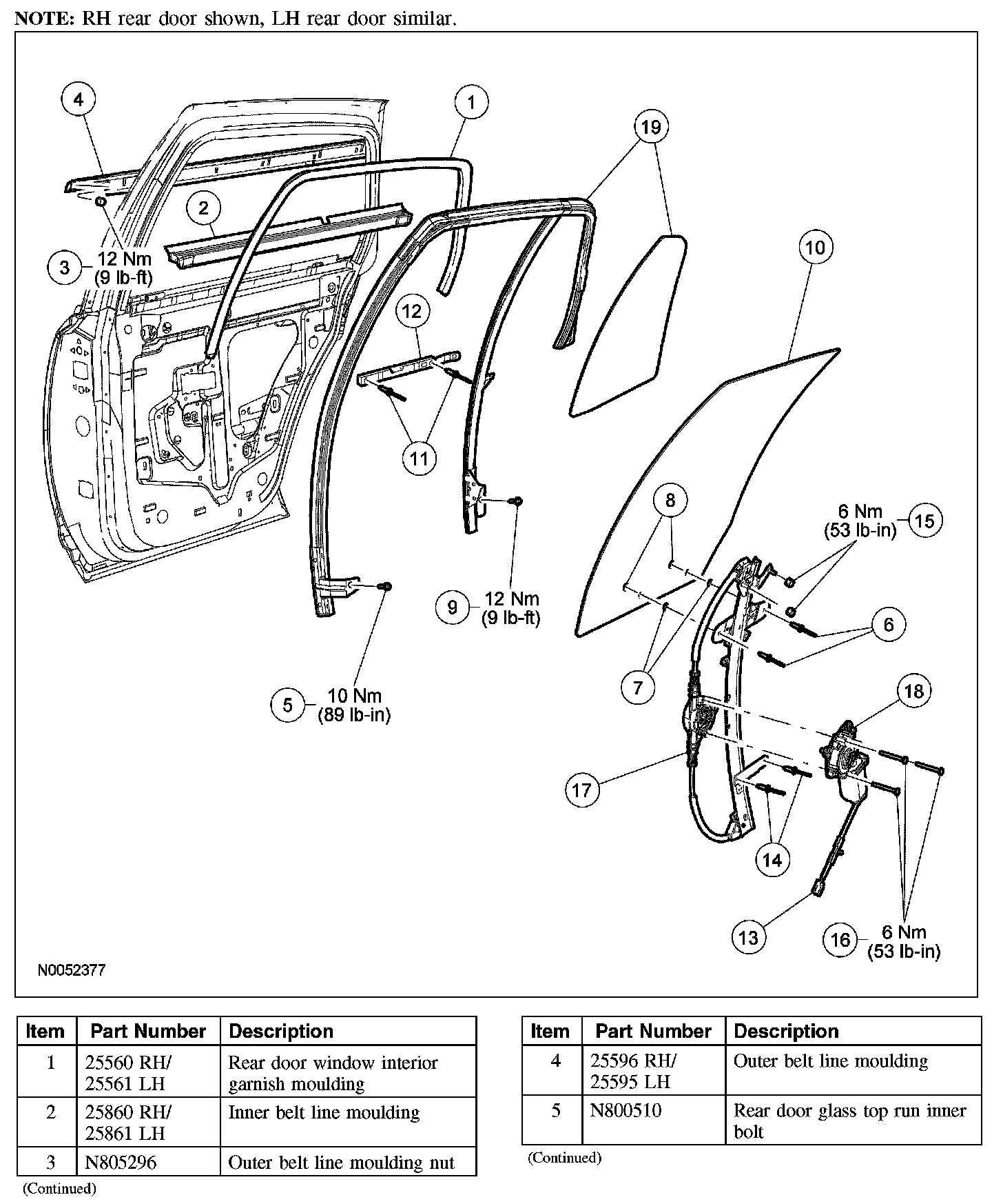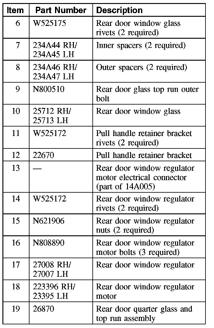 WINDOW REGULATOR AND MOTOR - REAR DOORSpecial Tool(s):