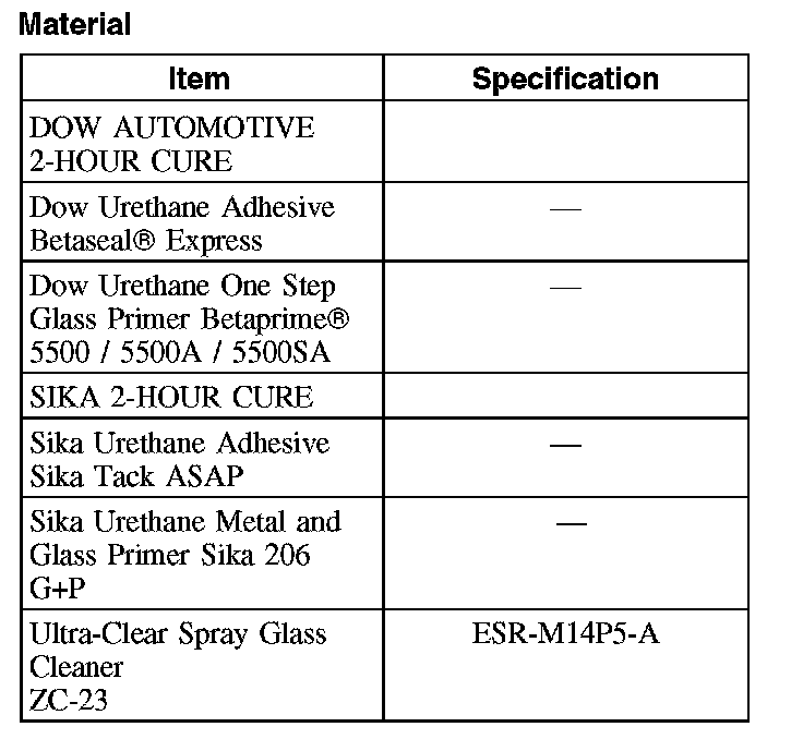 5. CAUTION: Be sure to use the same brand of cure-rate products for the adhesive primer. Do not mix different brands of urethane and primer. Refer to the Material Chart in the procedure.