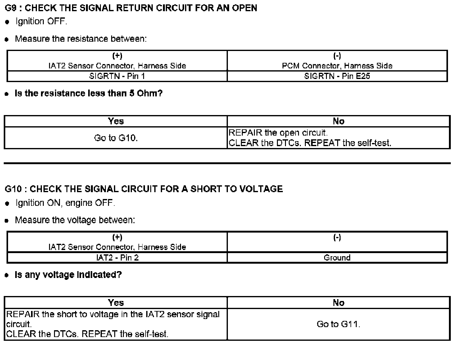 PINPOINT TEST G: INTAKE AIR TEMPERATURE 2 (IAT2) SENSOR
