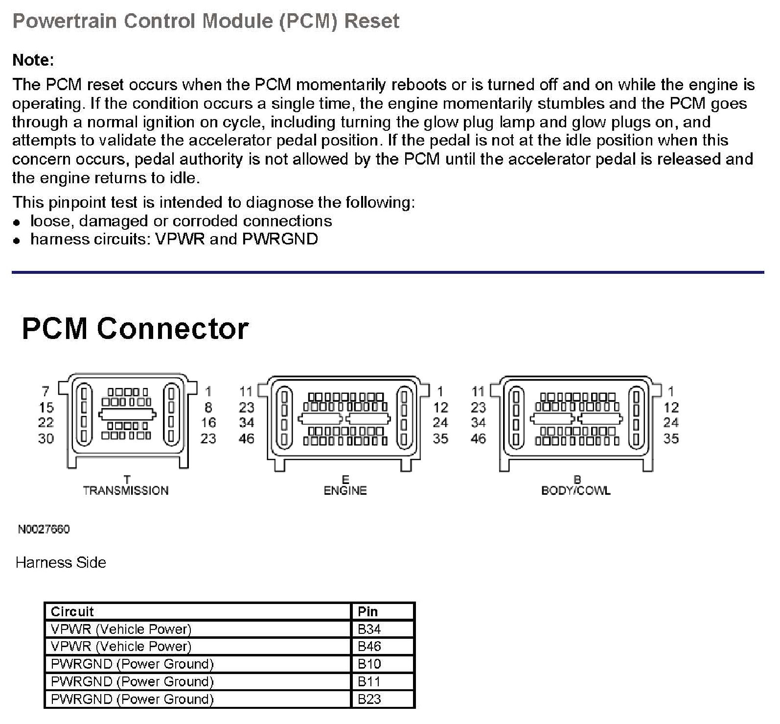 PINPOINT TEST AD: POWERTRAIN CONTROL MODULE (PCM) RESET