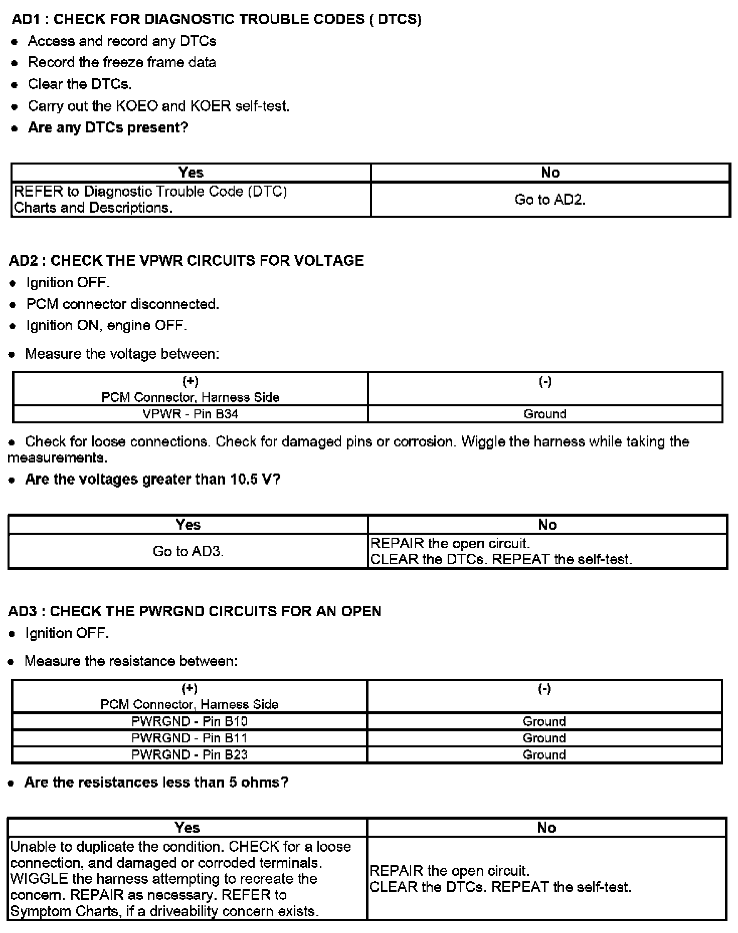 Tests AD: Powertrain Control Module (PCM) Reset