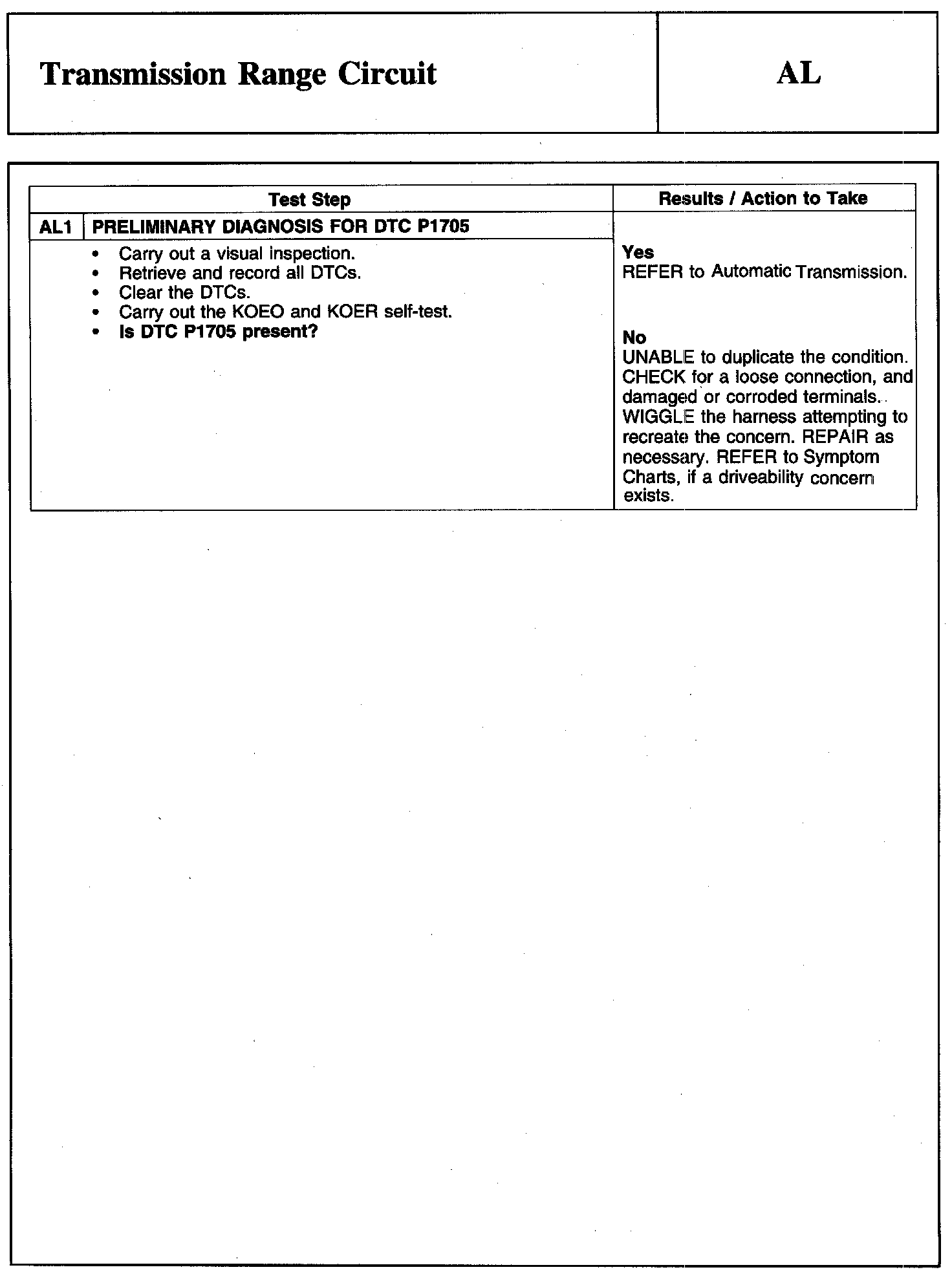 PINPOINT TEST AL: TRANSMISSION RANGE CIRCUIT