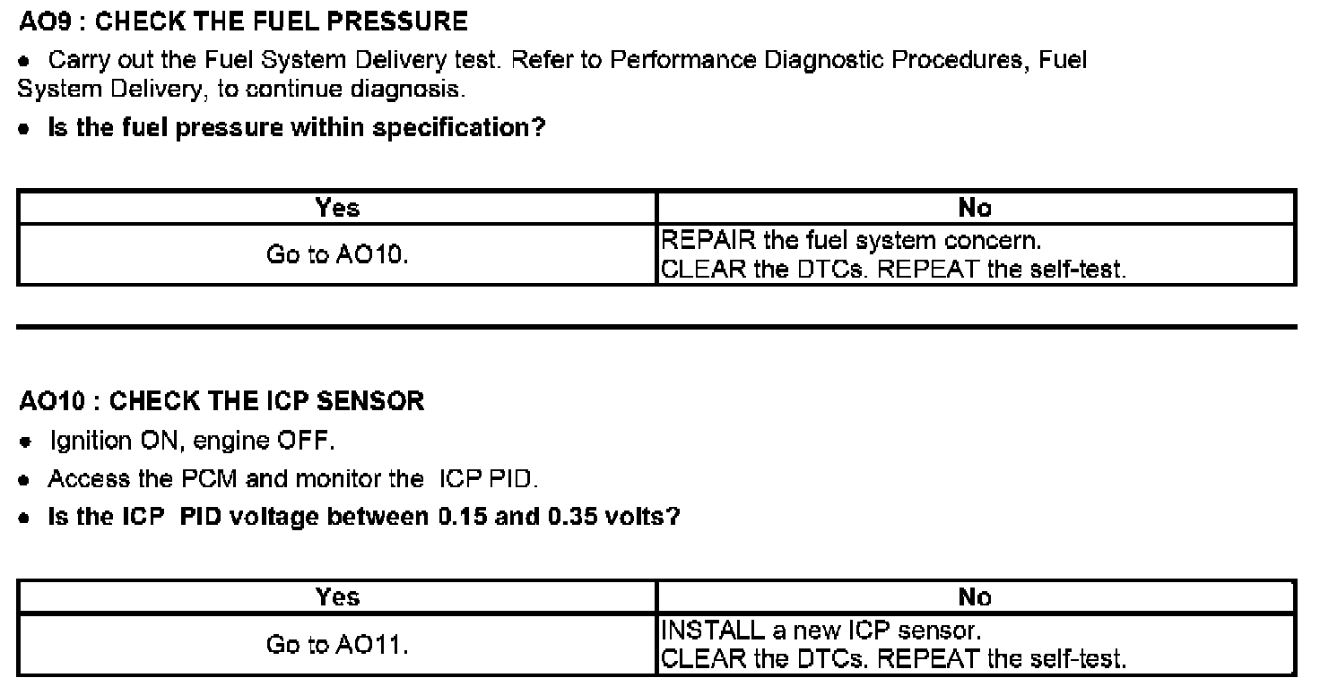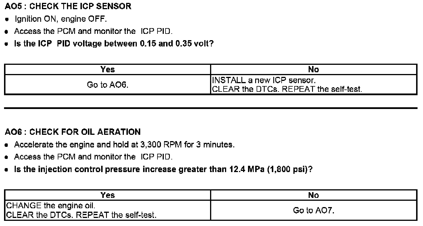 PINPOINT TEST AO: INJECTOR CONTROL PRESSURE TOO HIGH