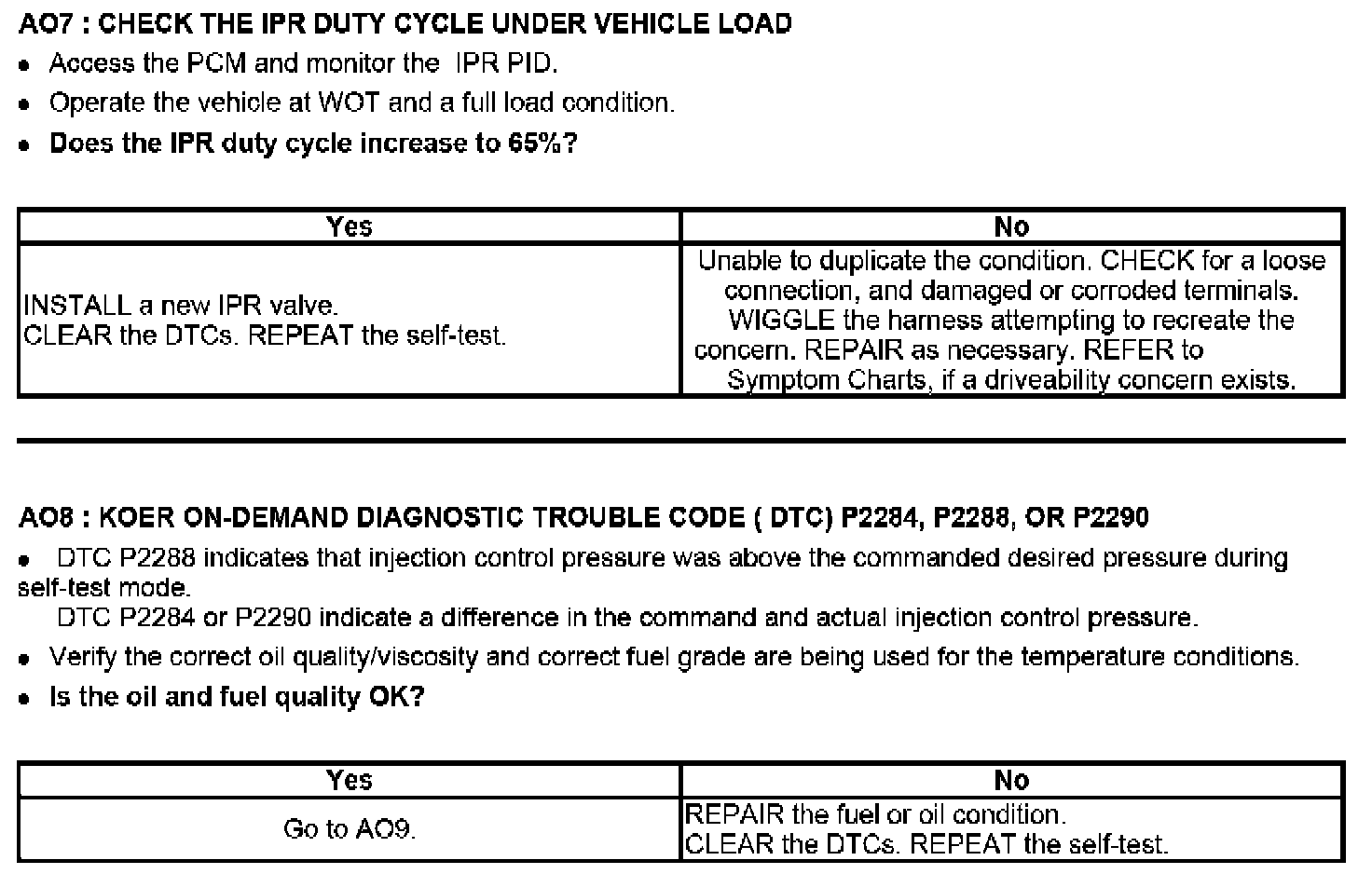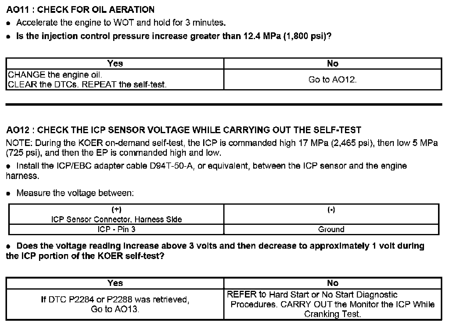 Tests AO: Injector Control Pressure Too High