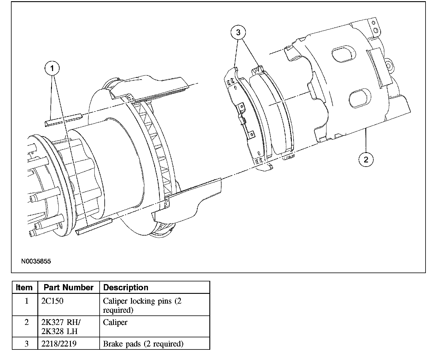8. CAUTION: Install new pads if the lining(s) are worn to or past the specified thickness above the metal backing plate. Install new pads in complete axle sets.