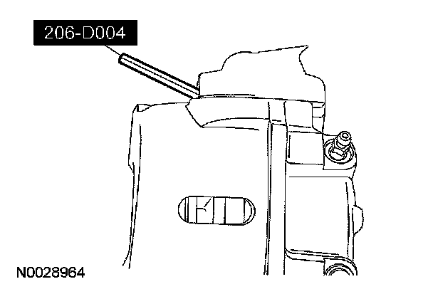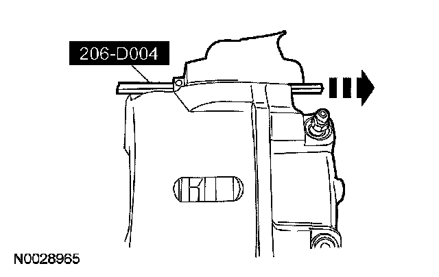 ^ Set the notched end of the special tool at a 45-degree angle against the end of the upper caliper locking pin.