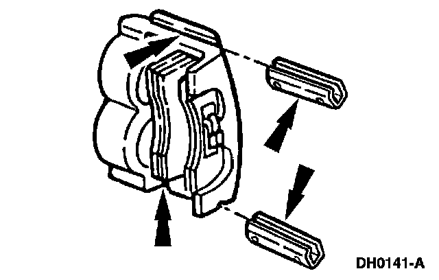 ^ Position the inboard brake pad and seat the anti-rattle springs in the caliper pistons.