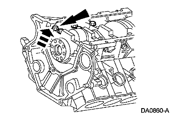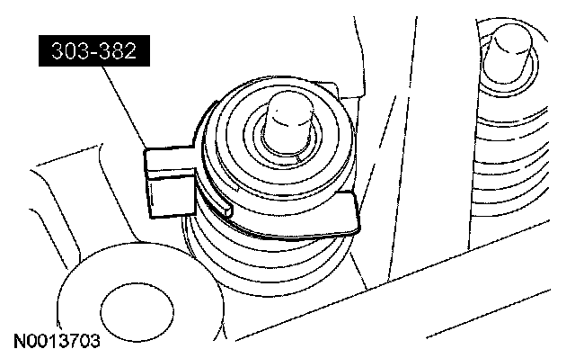 43. CAUTION: If one or both of the tensioner mounting bolts are loosened or removed, the tensioner-sealing bead must be inspected for seal integrity. If cracks, tears, separation from the tensioner body or permanent compression of the seal bead is observed, install a new tensioner.