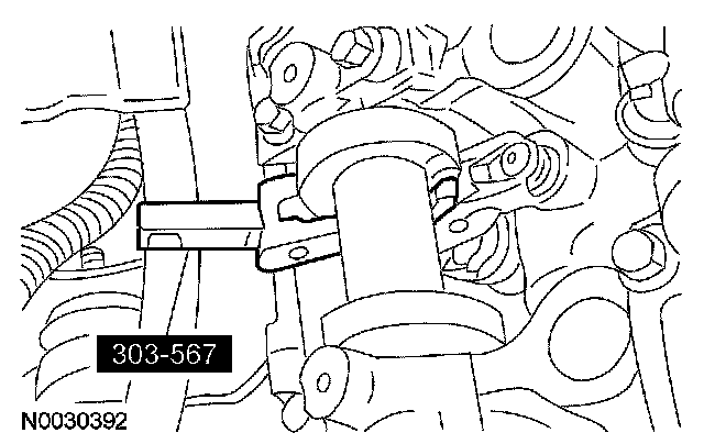 CAUTION: Place clean shop towels over exposed engine cavities. Carefully remove the towels so foreign material is not dropped into the engine.