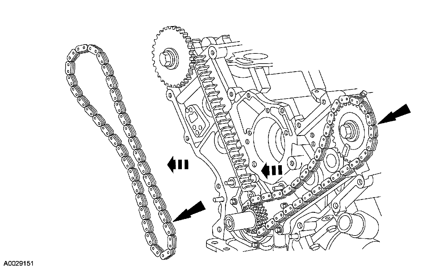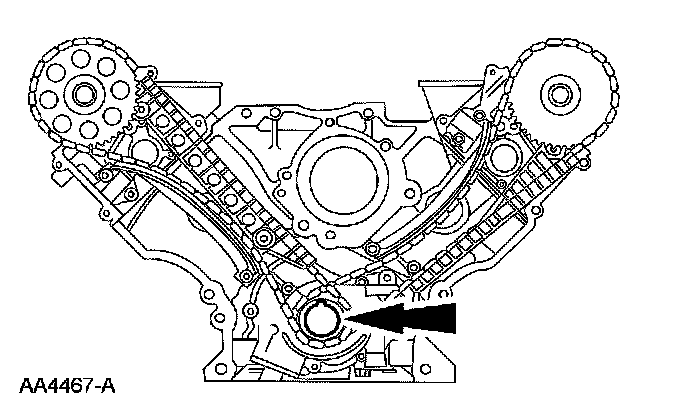 44. Remove the timing chains and crankshaft sprocket.