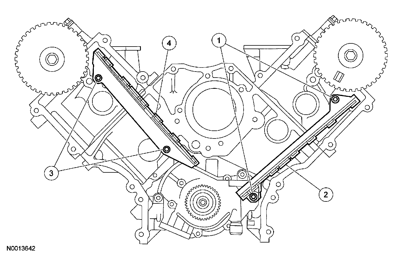 4 Remove the RH timing chain guide.
